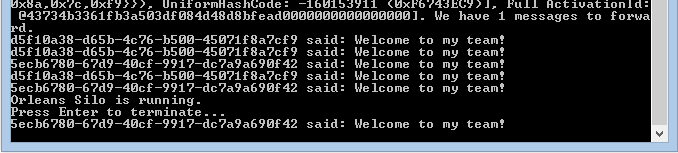 Console.WriteLine("Orleans Silo is running.\nPress Enter to terminate...");