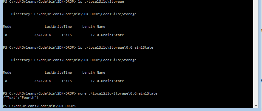 After running the code, you should find a Storage directory under the bin\Debug directory of the silo host project.